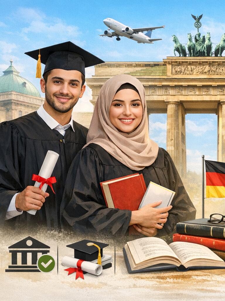 نقدم خدمات متكاملة للطلاب الراغبين في الدراسة في ألمانيا — من القبول الجامعي إلى الحصول على التأشيرة والاستقرار بعد الوصول.